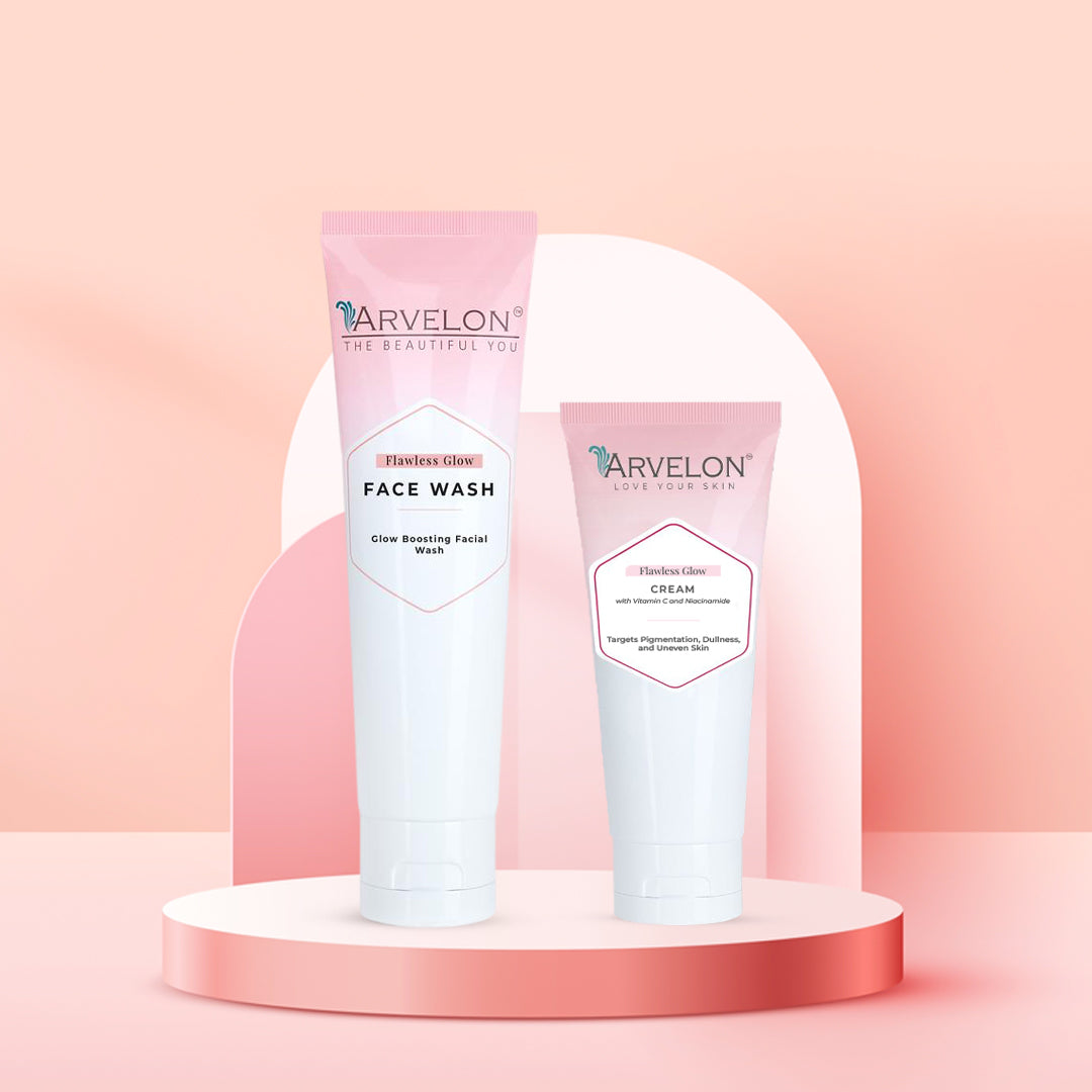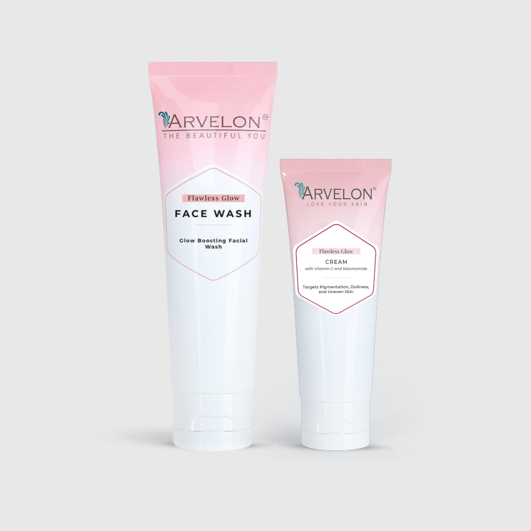 Get radiant, nourished skin with the Glow Aura Combo! This perfect duo combines the Flawless Glow Cream and the Flawless Glow Face Wash to give you a complete skincare routine that cleanses, hydrates, and enhances your natural glow.