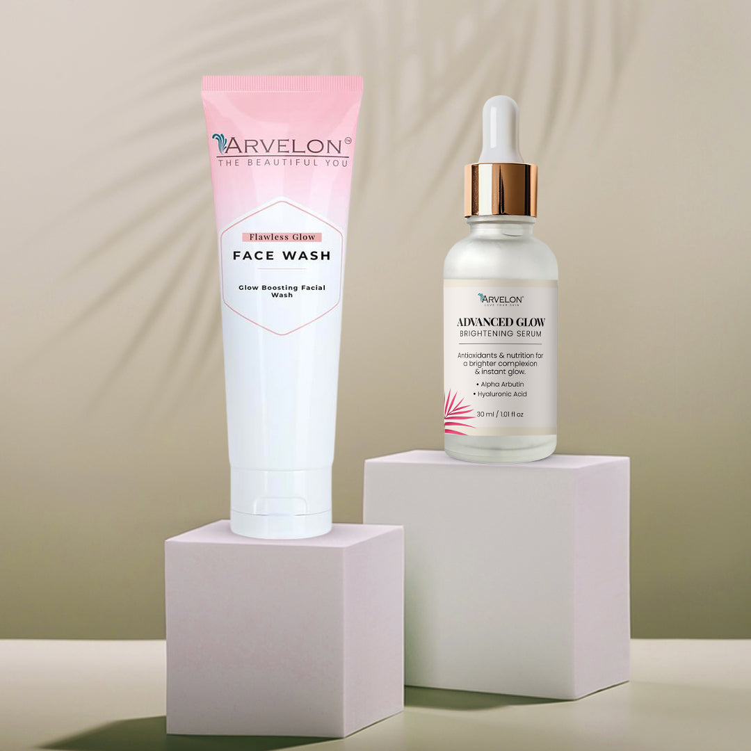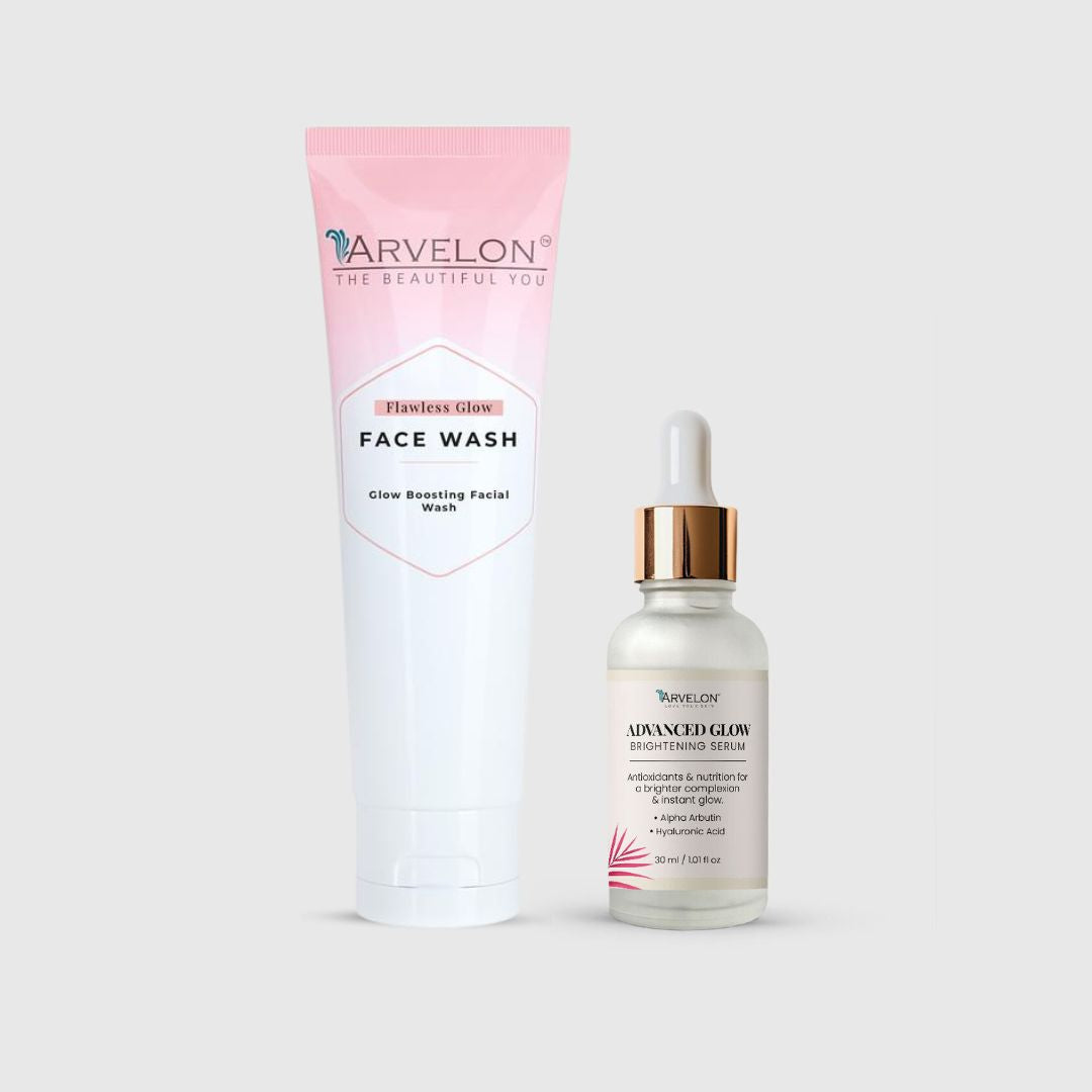 Start and end your day with radiance using our Glow Boosting Combo, a powerful duo designed to deeply cleanse, brighten, and restore your skin’s natural glow. The set includes our Flawless Glow Face Wash, which gently removes impurities and refreshes dull skin, setting the perfect base for the transformative Advanced Glow Brightening Serum. Infused with Hyaluronic Acid, Alpha Arbutin, and Glycolic Acid, the serum targets pigmentation, uneven tone, and dryness.